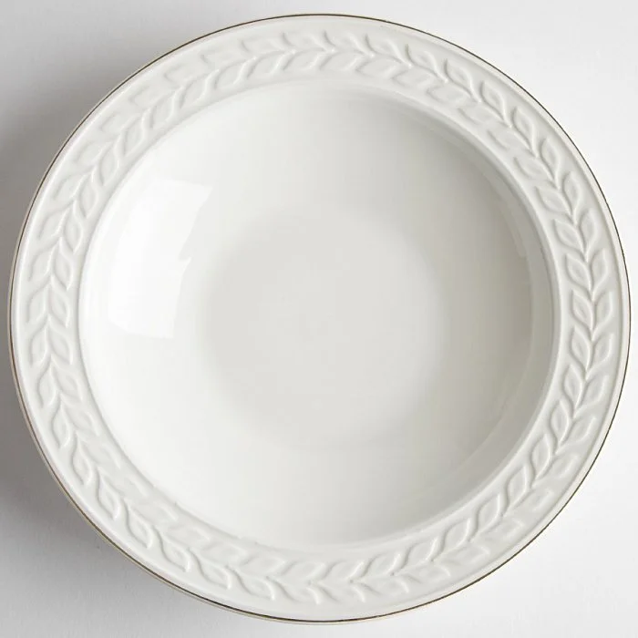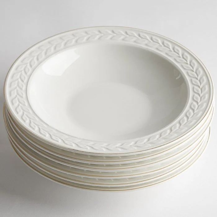 - Тарелки суповые из высококачественного фарфора с рельефным рисунком и золотой каймой в цветной коробке