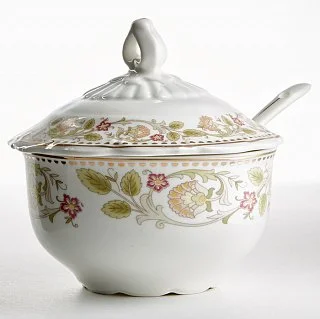 - Сахарница из высококачественного фарфора с декоративным рисунком и золотой обводкой