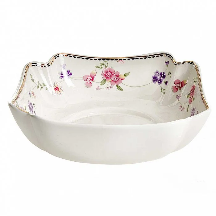 - Салатник из высококачественного фарфора с декоративным рисунком и золотой обводкой