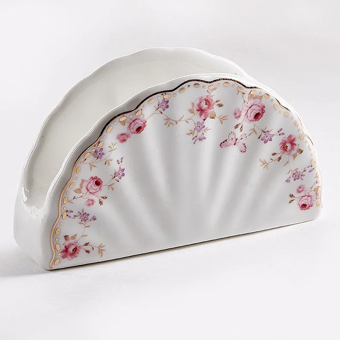 - Салфетница из высококачественного фарфора с декоративным рисунком и золотой обводкой
