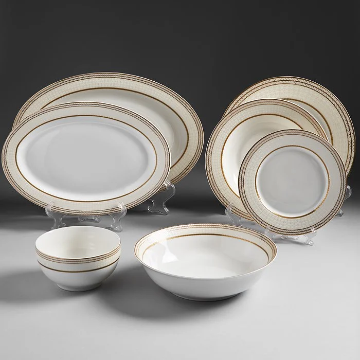 - Столовый сервиз на 6 персон из высококачественного фарфора с декоративным рисунком и золотой обводкой