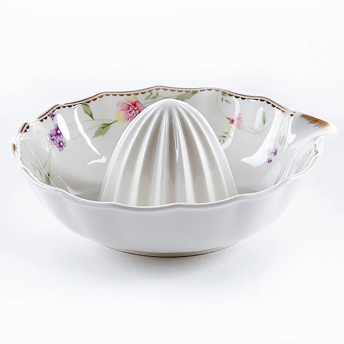 - Соковыжималка для цитрусовых из высококачественного фарфора с декоративным рисунком и золотой обводкой