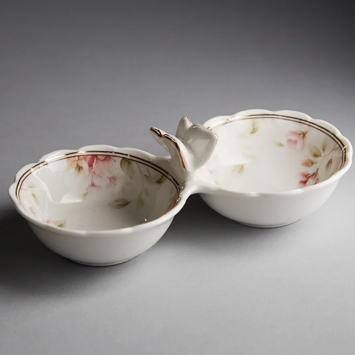 - Соусник из высококачественного фарфора с декоративным рисунком и золотой обводкой