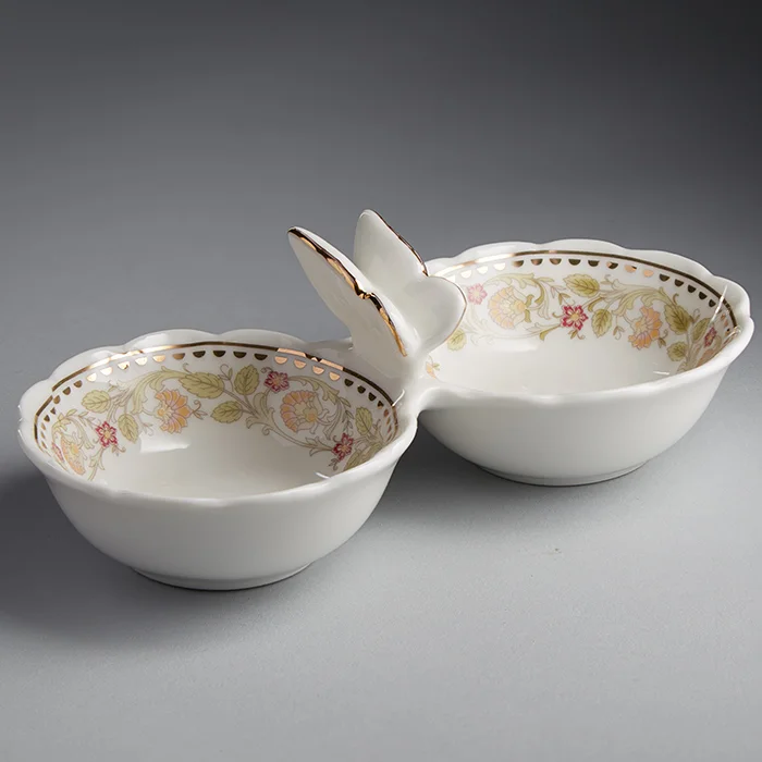 - Соусник из высококачественного фарфора с декоративным рисунком и золотой обводкой