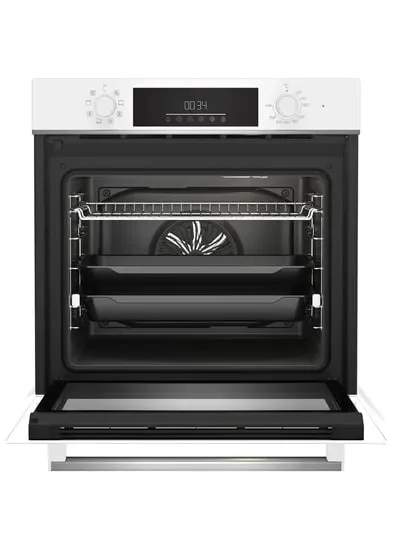 Белый духовой шкаф с LED дисплеем, поворотными переключателями и 8 режимами готовки, в числе которых гриль, разморозка и 3D приготовление, позволяющее готовить несколько блюд одновременно. Духовка имеет класс энергопотребления А и большой объем 72 л, занимая всего лишь 56 сантиметров в ширину. Благодаря съемной внутренней поверхности дверцы и каталитической задней стенке за духовым шкафом легко ужаживать и поддерживать его в идеальном состоянии без лишних усилий. В комплекте: стандартный противень, глубокий противень и решетка.