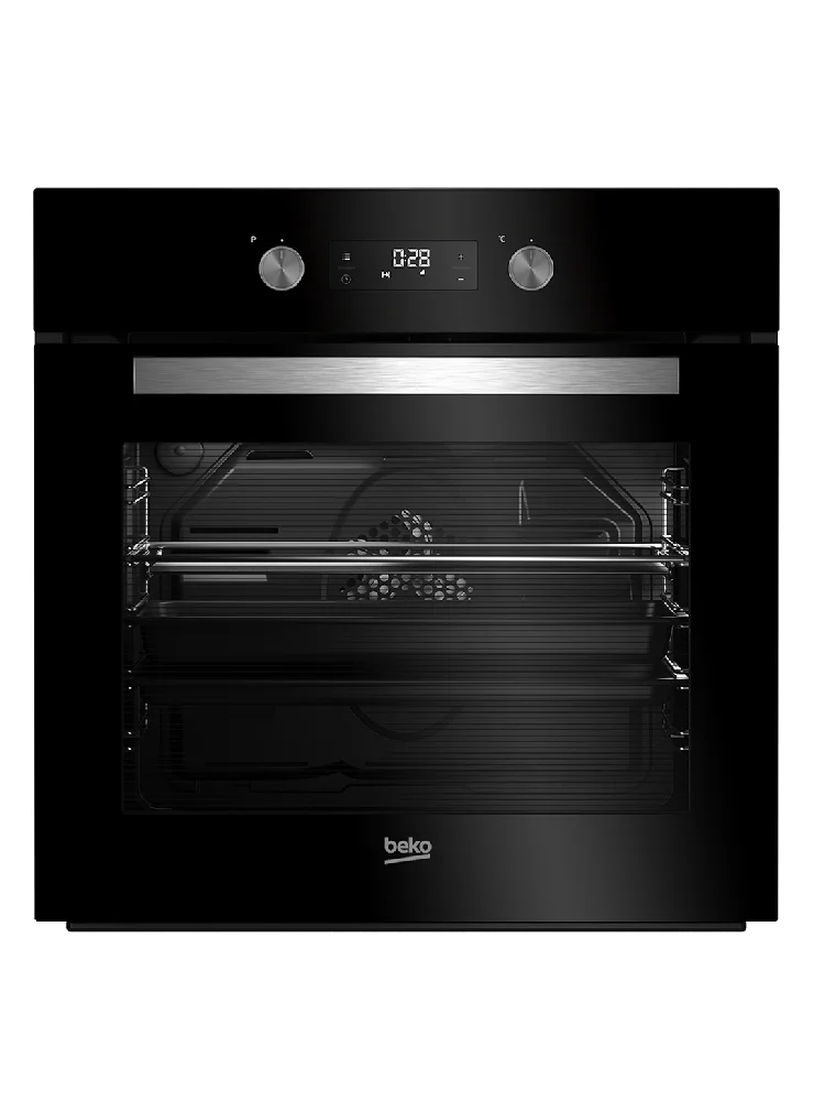 Встраиваемый духовой шкаф Beko с удобным LED-дисплеем и утапливаемыми ручками выбора температуры и режима приготовления имеет оптимальный объем 71 л и класс энергоэффективности А. 6 режимов работы позволяют готовить в духовке любое блюдо, а функция ускоренного разогрева Booster обеспечивает быстрый разогрев духового шкафа до выбранной температуры.