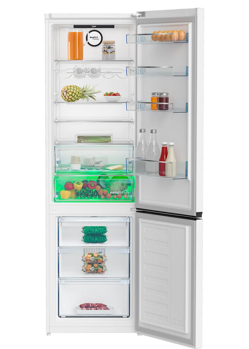 Beko B3R0CNK402HW — отдельностоящий двухкамерный холодильник белого цвета с нижним расположением морозильной камеры.