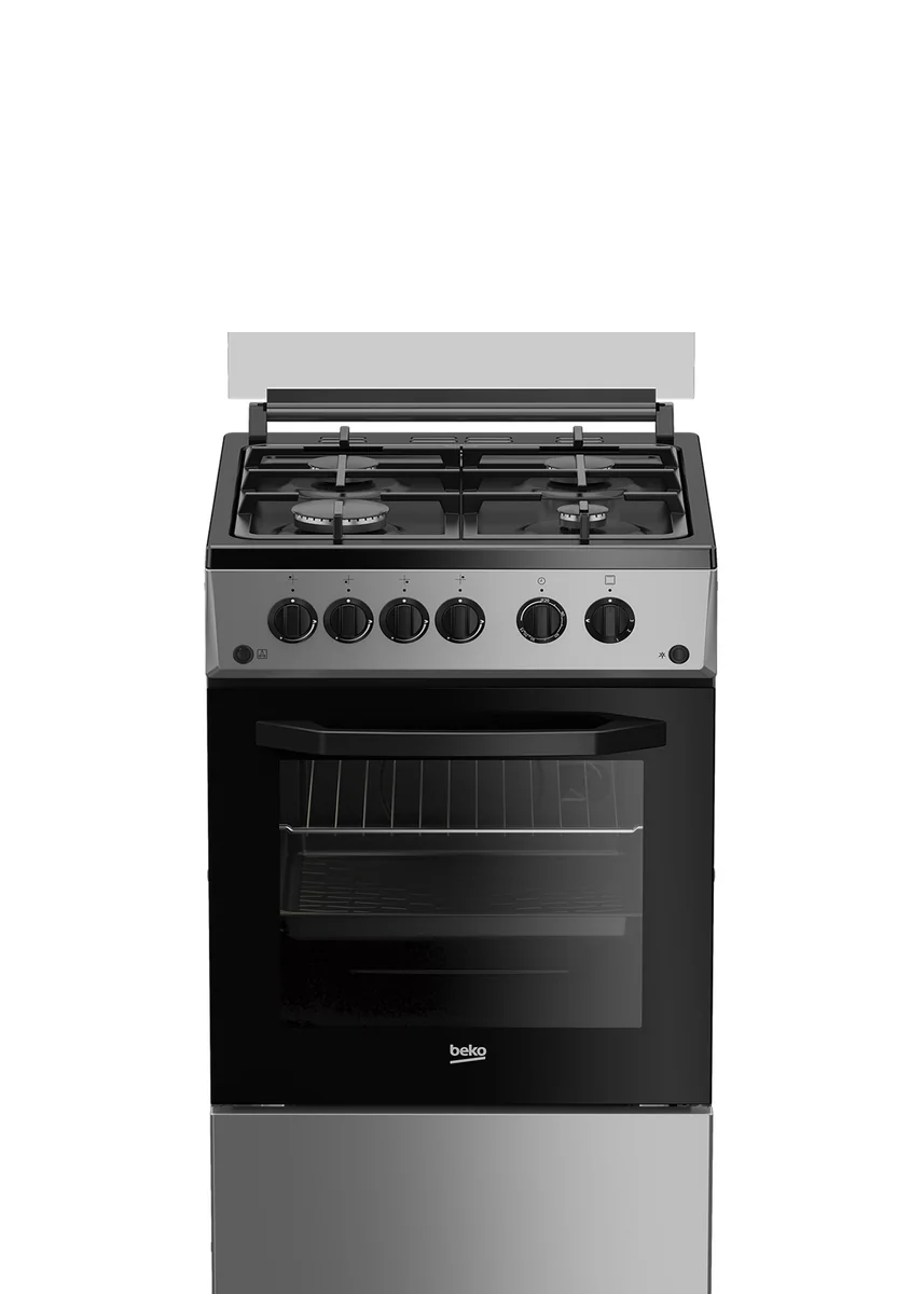 Стильная газовая плита серебристого цвета и шириной 50 см. Варочная поверхность оснащена 4 конфорками разного диаметра с электроподжигом и чугунными решетками, которые снимаются для удобной очистки плиты. Газовый духовой шкаф объемом 55 л имеет удобный термостат, несколько режимов работы, включая гриль, и газ-контроль для повышенной безопасности – подача газа автоматически прекращается, если пламя случайно потухнет. Плита также оснащена механическим таймером со звуковым сигналом и ящиком для хранения посуды.