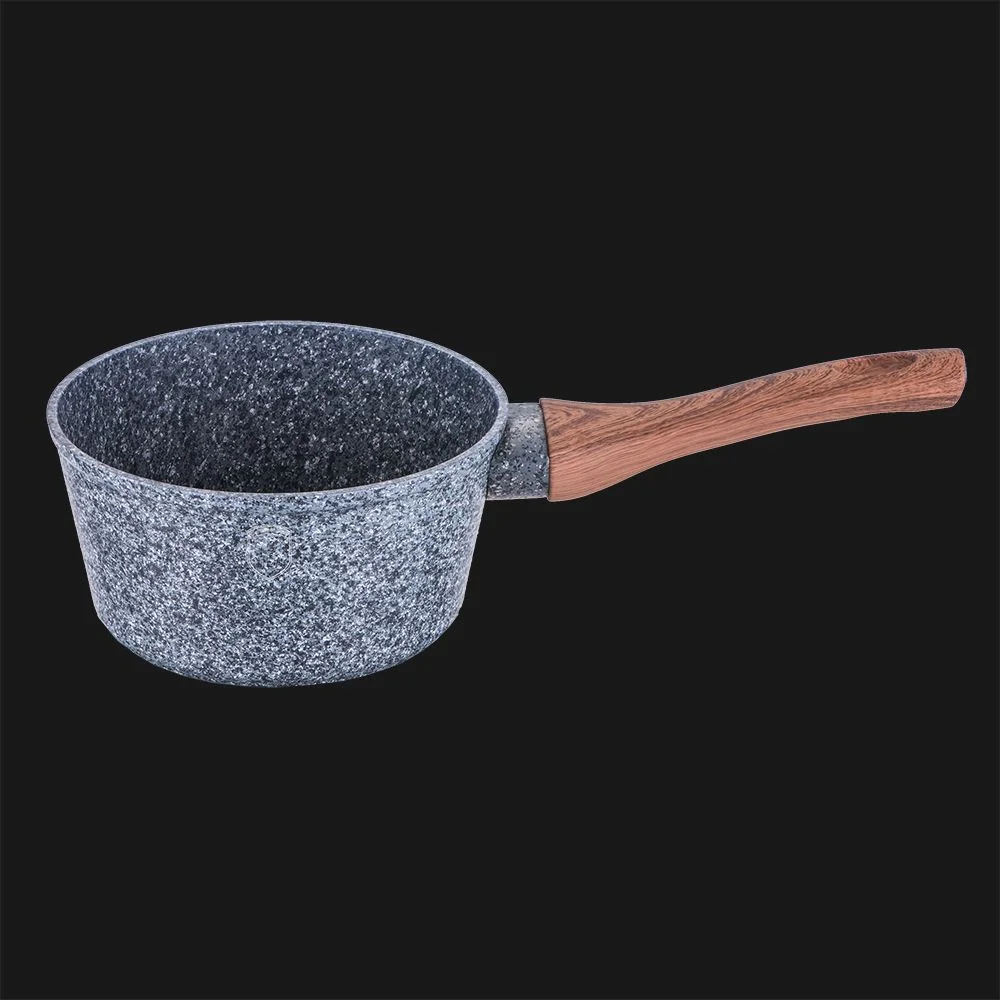 Ковш 1,2л - 16*7,5см, кованый алюминий, 3 слоя мраморно-гранитного покрытия, толщина стенок 0,5 см, эргономичная ручка "soft touch", индукционное дно, цвет: серый/коричневый, подставка под горячее в подарок, упаковка: цветной рукав