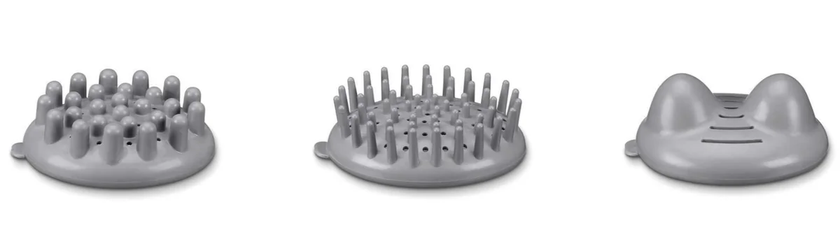 - Три сменные массажные насадки (две с круглыми выступами и одна щетка)