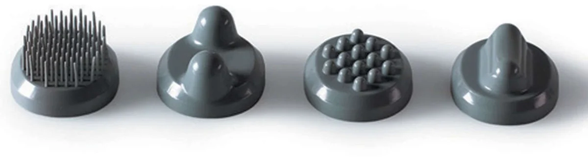 - Четыре сменные массажные насадки (две с круглыми выступами, щетка и коническая)