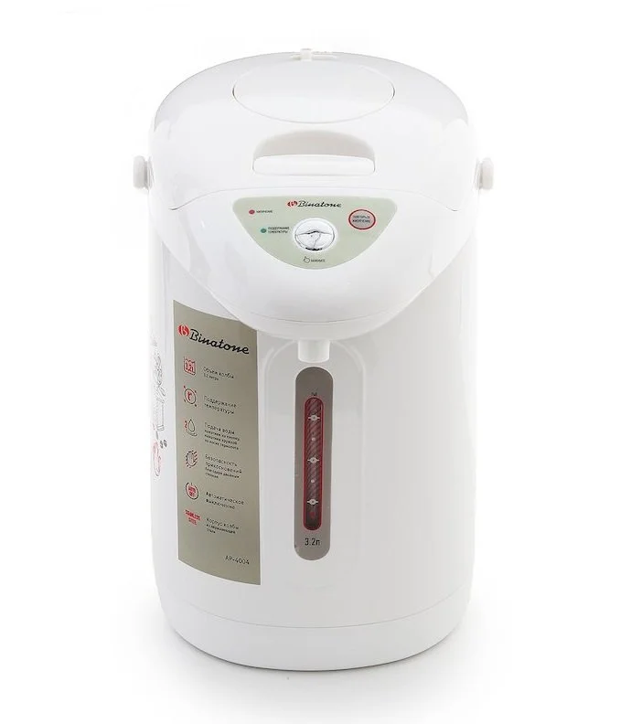 Электрочайники, термопоты, самовары » BINATONE Термопот AP 4004 Термопот BINATONE AP 4004 Производитель: BinatoneМатериал корпуса: ПластикМощность: до 1000Объем: 3-3.9Тип: ТермопотНаличие: Нет в наличииБонусы: 28 ₽ Код товара: 6642 нет в наличии Описание Технические характеристики: Тип: термопот Объем: 3.2 л Мощность: 750 Вт Материал корпуса: пластик Тип нагревательного элемента: закрытый Индикация включения: нет Индикатор уровня воды: есть Поделитесь ссылкой: