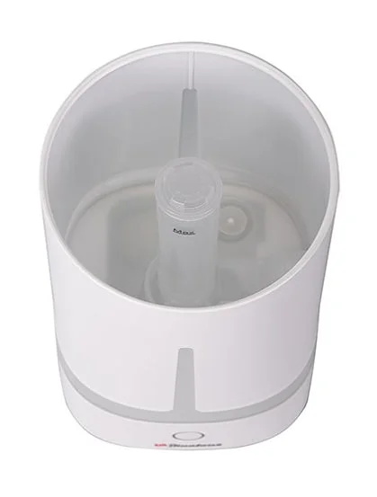 Увлажнитель работает тихо и экономично. Управление осуществляется с помощью одной кнопки, она же является индикатором работы и подскажет выбранный режим. Приятный звуковой сигнал сообщит о необходимости долить воду.