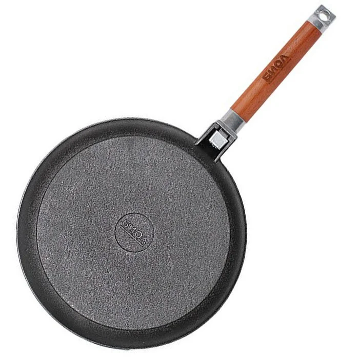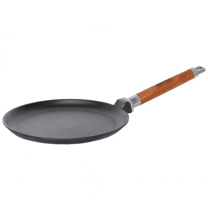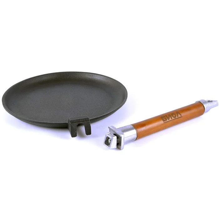 - Чугунная блинная сковорода со съемной деревянной ручкой без крышки