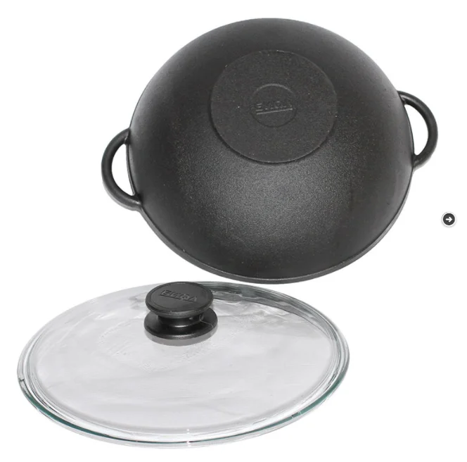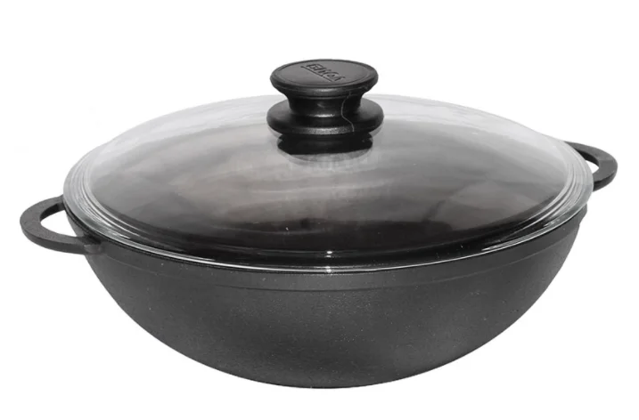 Сковорода WOK чугунная со стеклянной крышкой 30см Биол 0530C