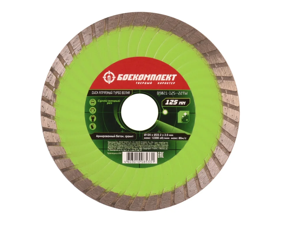 Алмазный диск 125x22,23 ТУРБО ВОЛНА, сухой рез, БОЕКОМПЛЕКТ B9021-125-22TW