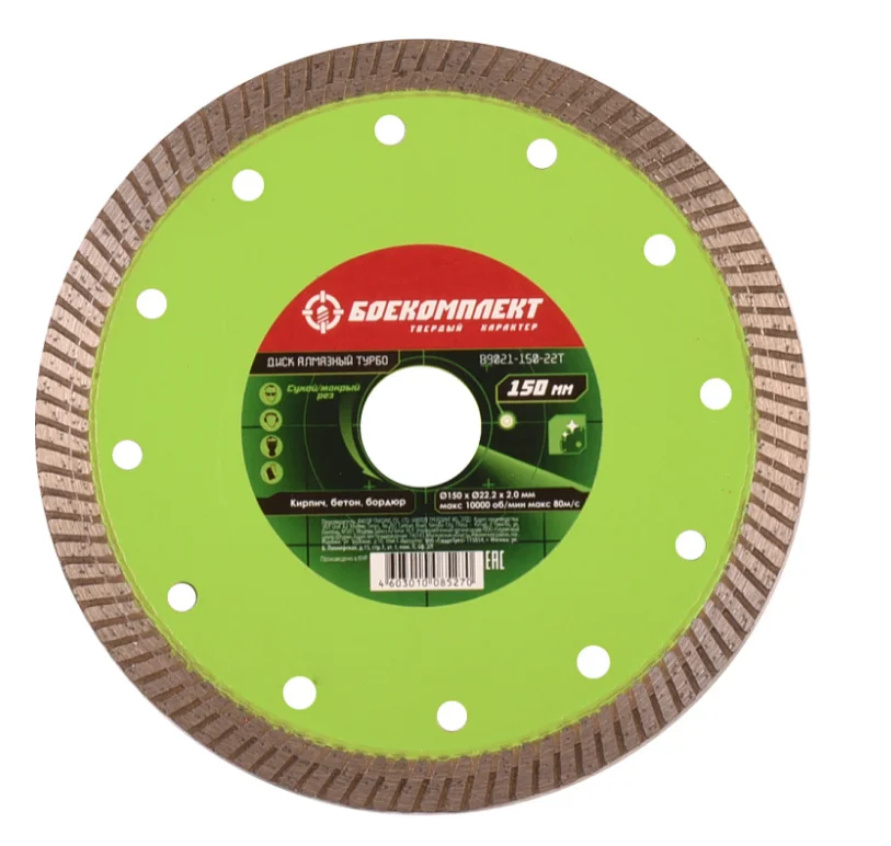 Алмазный диск 150x22,23 ТУРБО, сухой рез, БОЕКОМПЛЕКТ B9021-150-22T