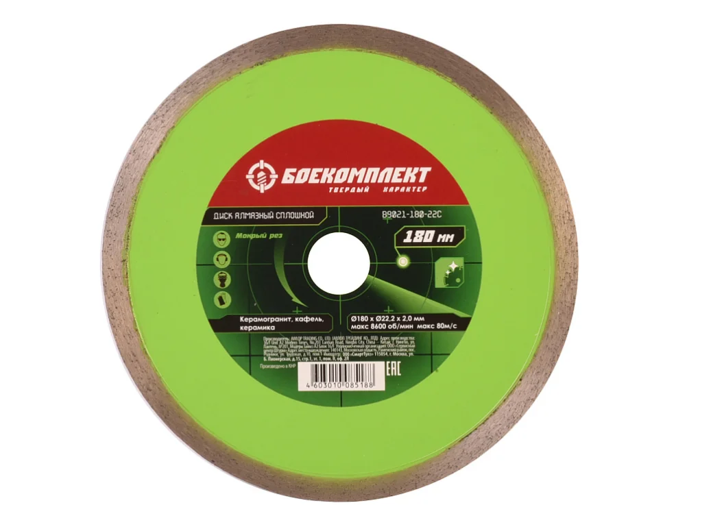 Алмазный диск 180x22,23 СПЛОШНОЙ, мокрый рез, БОЕКОМПЛЕКТ B9021-180-22C