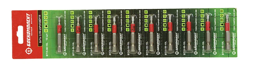 Биты t15x50мм, Torx Tamper, сталь S2, 10шт ЛЕНТА, БОЕКОМПЛЕКТ BT15-50-10L