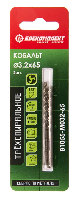Сверло по металлу ТРЁХСПИРАЛЬНОЕ Кобальт 3,2х65мм 2шт БОЕКОМПЛЕКТ B1055-M032-65
