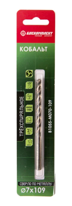 Сверло по металлу ТРЁХСПИРАЛЬНОЕ Кобальт 7,0х109мм БОЕКОМПЛЕКТ B1055-M070-109