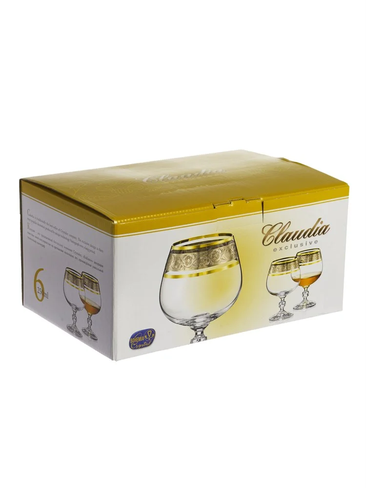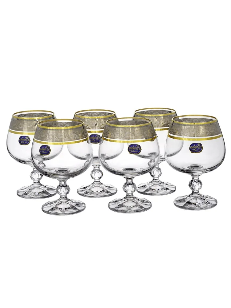 Набор бокалов для коньяка BOHEMIA Claudia 250 мл. (6 шт.) Панто платина, золото Exclusive 40149/43249/250
