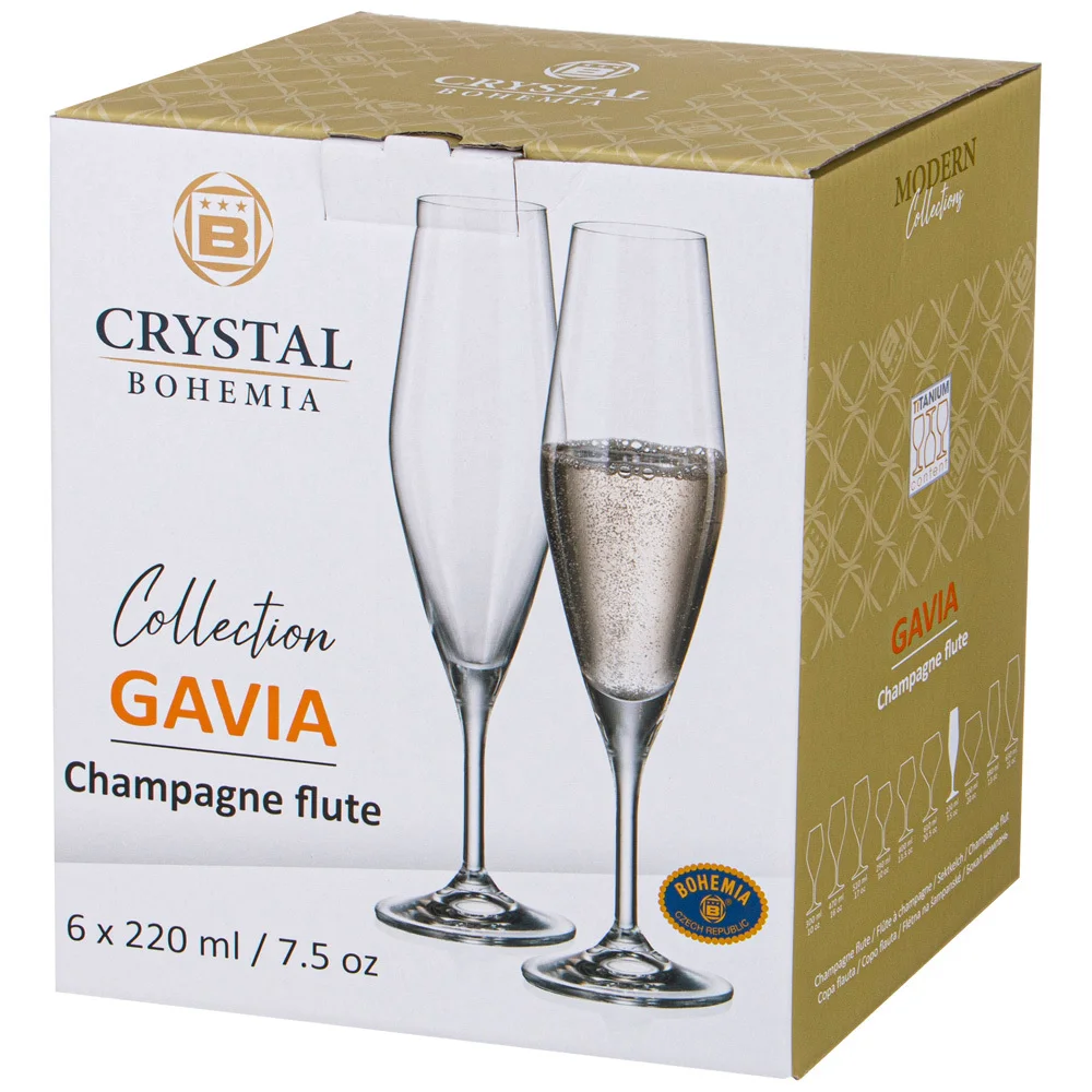 Богемское стекло — гордость современной Чехии! Ему до сих пор нет равных. CRYSTALITE BOHEMIA - один из ведущих производителей чешского стекла. Благодаря сочетанию старых традиций, новейших технологий и современных дизайнерских идей создается лучшая продукция, которую знают во всем мире. Коллекции Crystalite Bohemia – это уникальные линии с неповторимым характером. Выбирайте на свой вкус и пользуйтесь с удовольствием! Гарантия качества – оригинальный продукт чешского производства! Серия GAVIA с острыми углами на изящной ножке имеют четкие и привлекательные геометрические линии. Серия имеет запоминающийся дизайн, притягивающий взгляды и хорошо вписывающийся в любую сервировку.