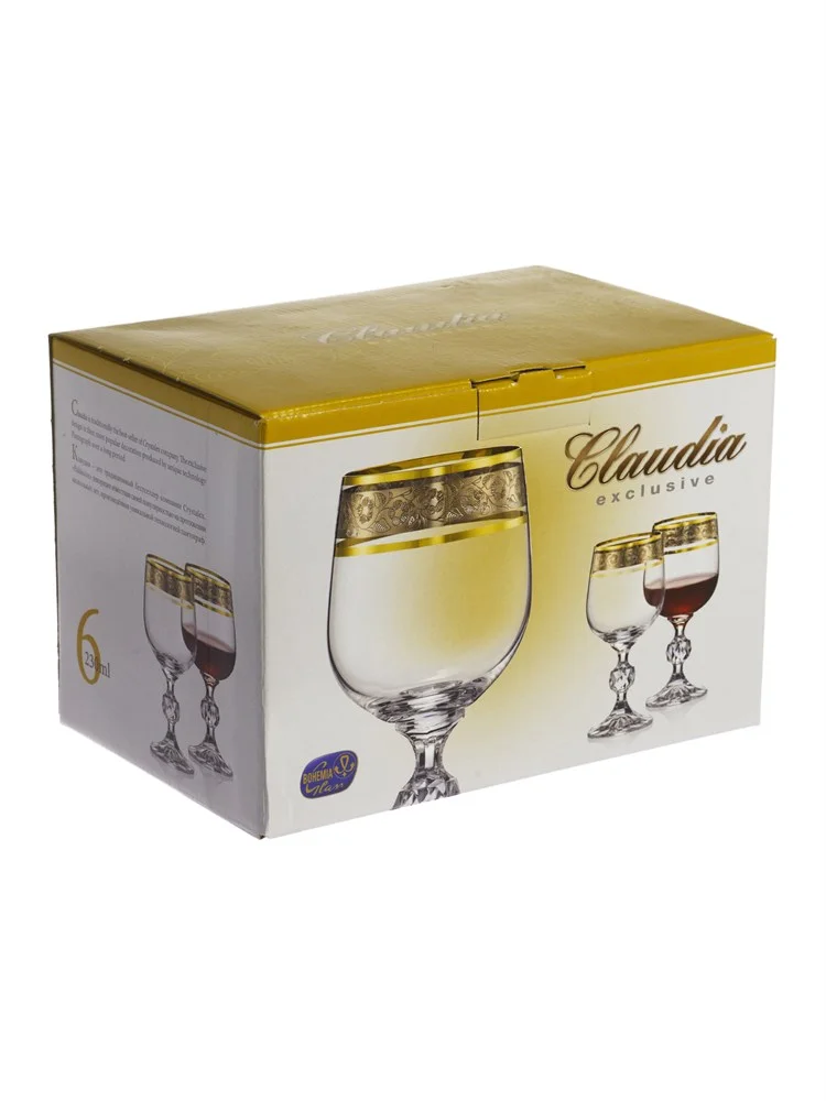 Набор бокалов для вина BOHEMIA Claudia 230 мл. (6 шт.) Панто платина, золото Exclusive 40149/43249/230