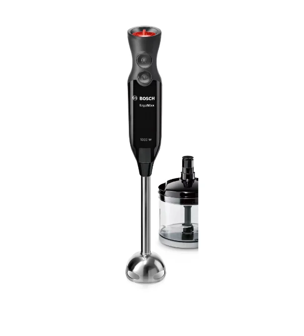 - Надежный замок от Bosch: благодаря защелкивающемуся механизму клик-замка погружная часть, венчик и измельчитель надежно фиксируются с моторной частью.