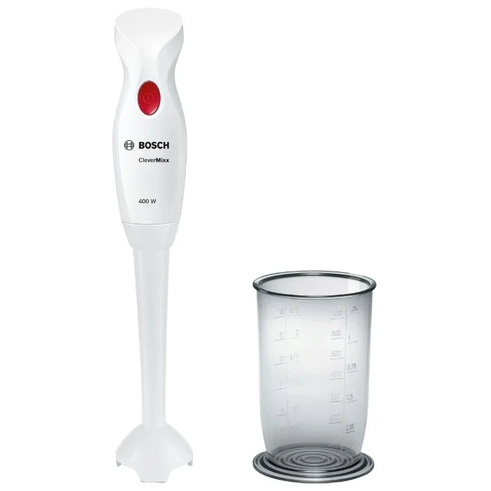 | Особенности | Все пластиковые части, контактирующие с продуктами, безопасны для здоровья и не содержат BPA (Бисфенол А). Надежная фиксация насадок к моторному блоку (поворотный принцип). Работает без брызг благодаря специальной конструкции погружной части. Стакан для перерабатываемых продуктов со шкалой. |