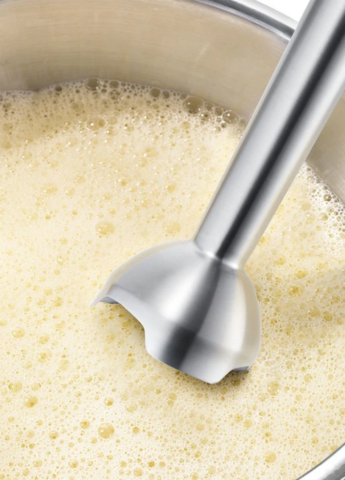 - Ножка блендера из высококачественной нержавеющей стали и инновационным ножом с 4 острыми лезвиями QuattroBladePro