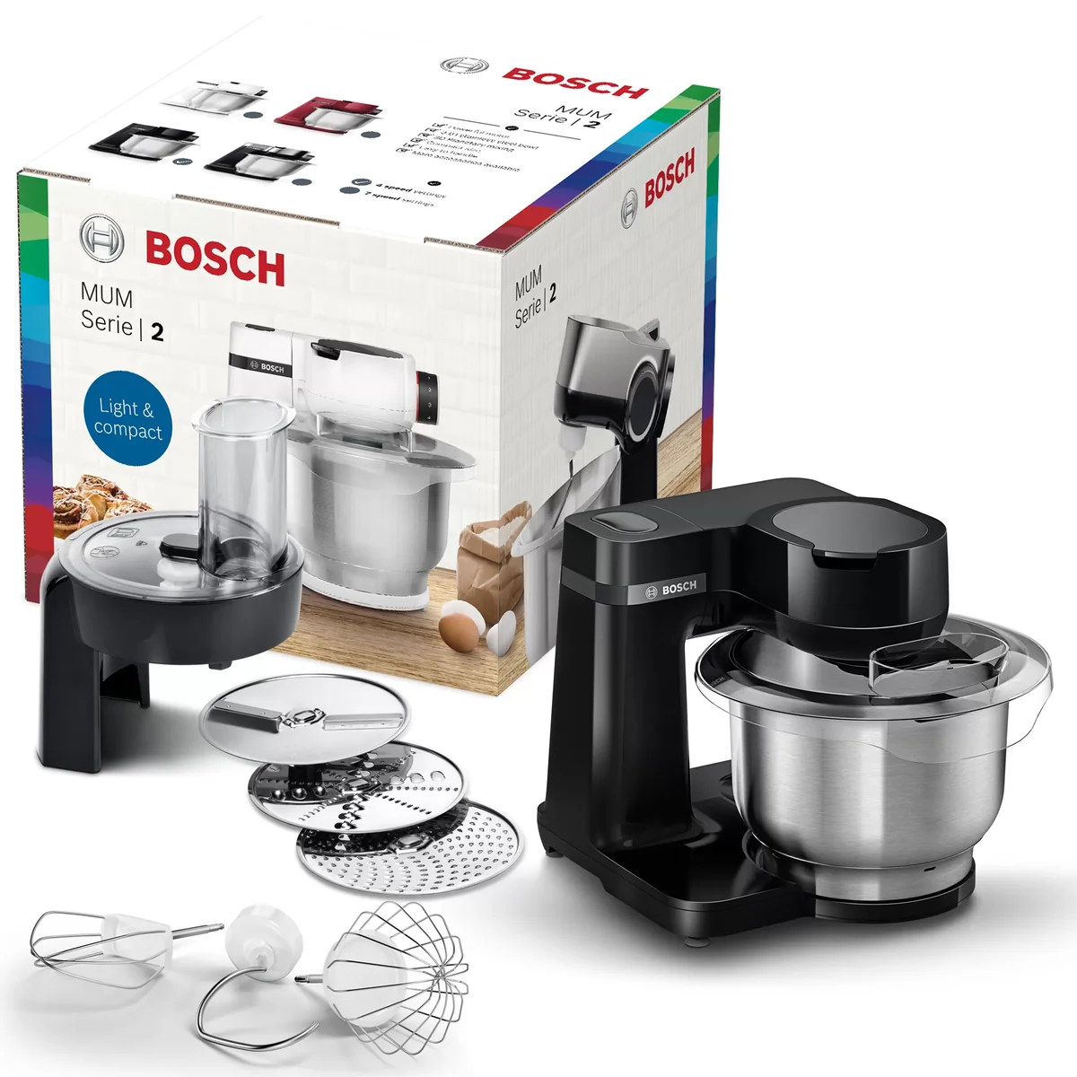 - Мощный двигатель Bosch: 700 Ватт для замеса даже плотного теста и быстрого взбивания.