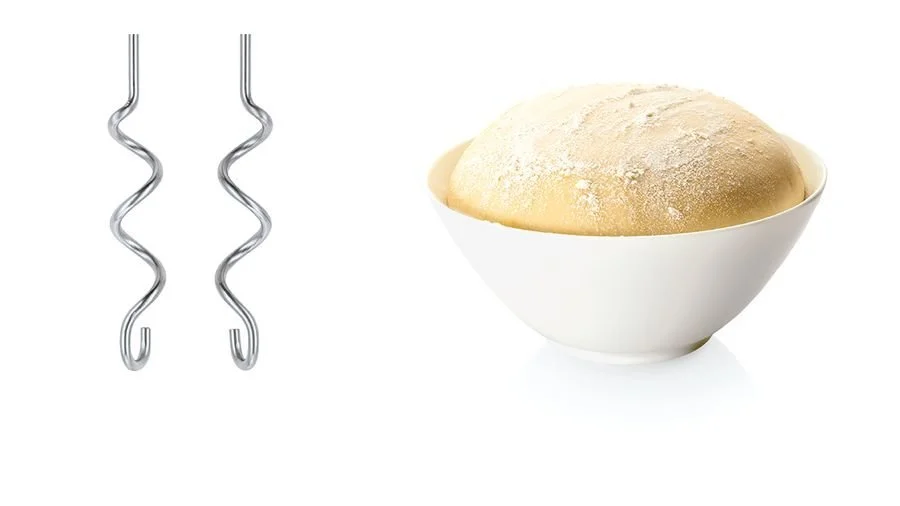 - В комплекте: 2 венчика из нержавеющей стали и 2 насадки для замешивания теста.