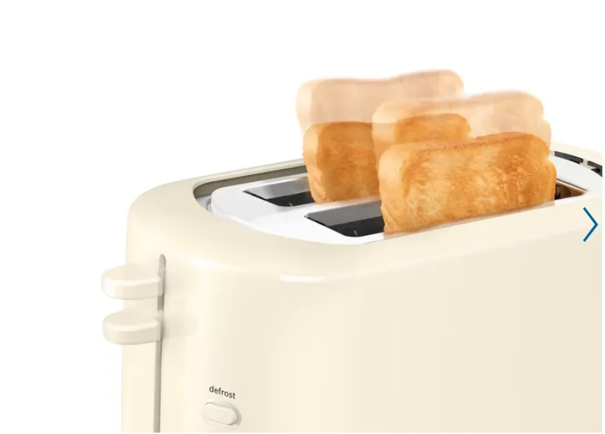 Иногда у вас в голове появляется эта картинка - абсолютно равномерно поджаренный кусочек золотисто-коричневого хлеба. Но результат не такой, как вам хотелось бы. Если у вас есть тостер с автоматическим центрированием, он дает вам именно тот тост, который вы хотите. Хлеб автоматически центрируется и обеспечивает равномерное поджаривание.