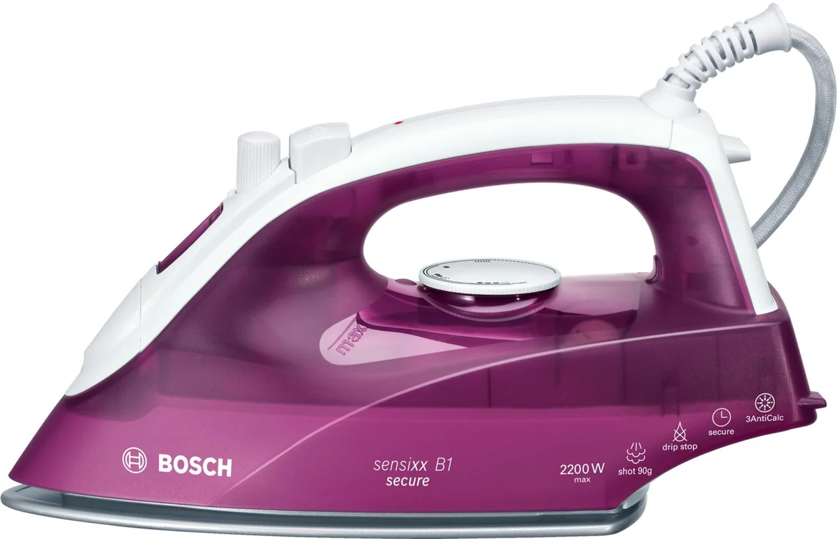 Три - счастливое число - это касается и срока службы прибора. Система защиты 3 AntiCalc обеспечивает идеальный пар без частичек накипи и включает в себя 3 вида защиты от накипи: Self clean, calc'n'clean и AntiCalc. Более долгий срок службы утюга.