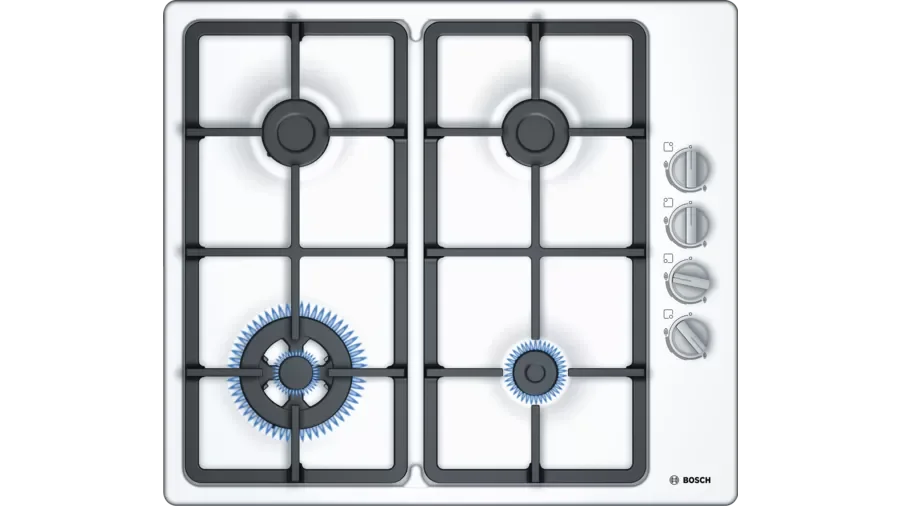 Газовая варочная поверхность Bosch PBH6C2B90R - надежная модель с классическим дизайном, способная стать наиболее востребованным устройством на вашей кухне. Для изготовления панели устройства использовалась эмалированная сталь: она неприхотлива в уходе и устойчива к воздействию высоких температур. Четыре конфорки, которыми оснащен прибор, управляются при помощи четырех поворотных переключателей, в которых предусмотрен электроподжиг. Вам не придется поджигать пламя от спичек: устройство сделает это автоматически при помощи электрической искры.