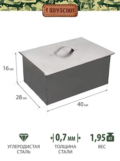Рекомендации по уходу: После эксплуатации коптильню и решетки следует почистить, вымыть, и насухо вытереть.