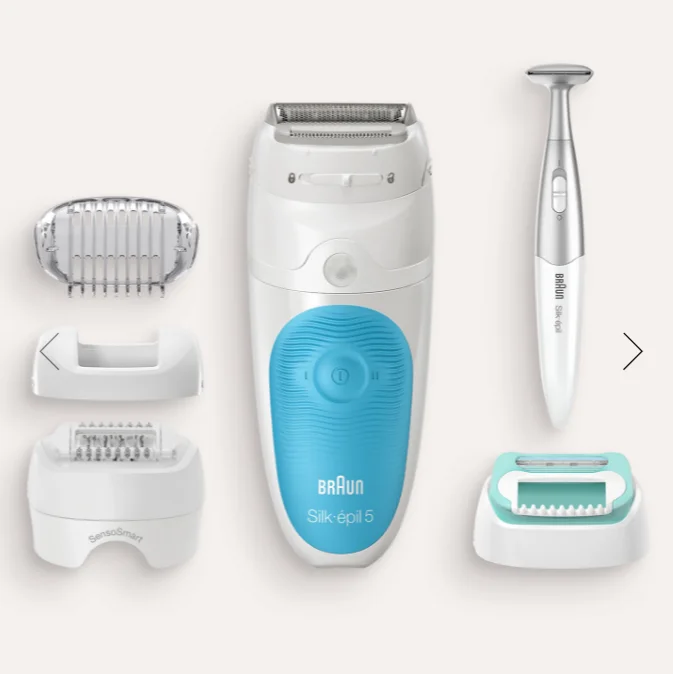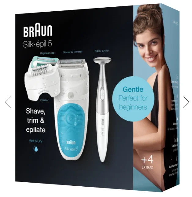Эпилятор Braun Silk-épil SES 5-810 WD Wet & Dry с 5 аксессуарами, включая стайлер для зоны бикини.