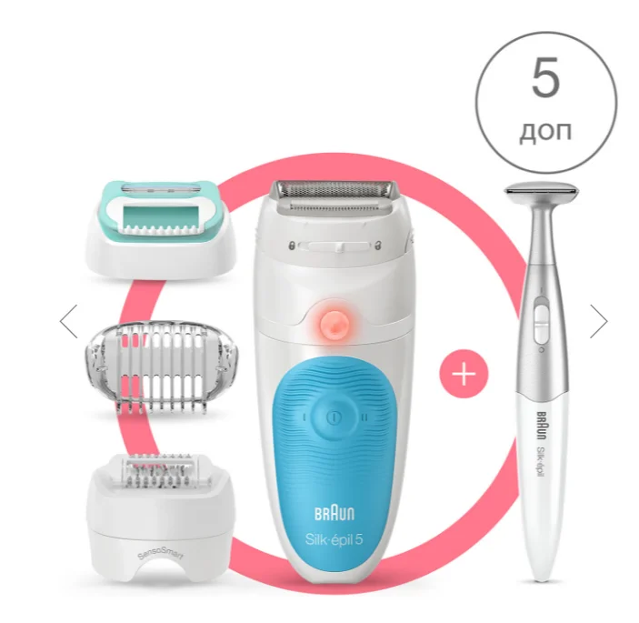 В комплект нового эпилятора Silk-épil 5 входит массажная насадка для более комфортной и бережной эпиляции.