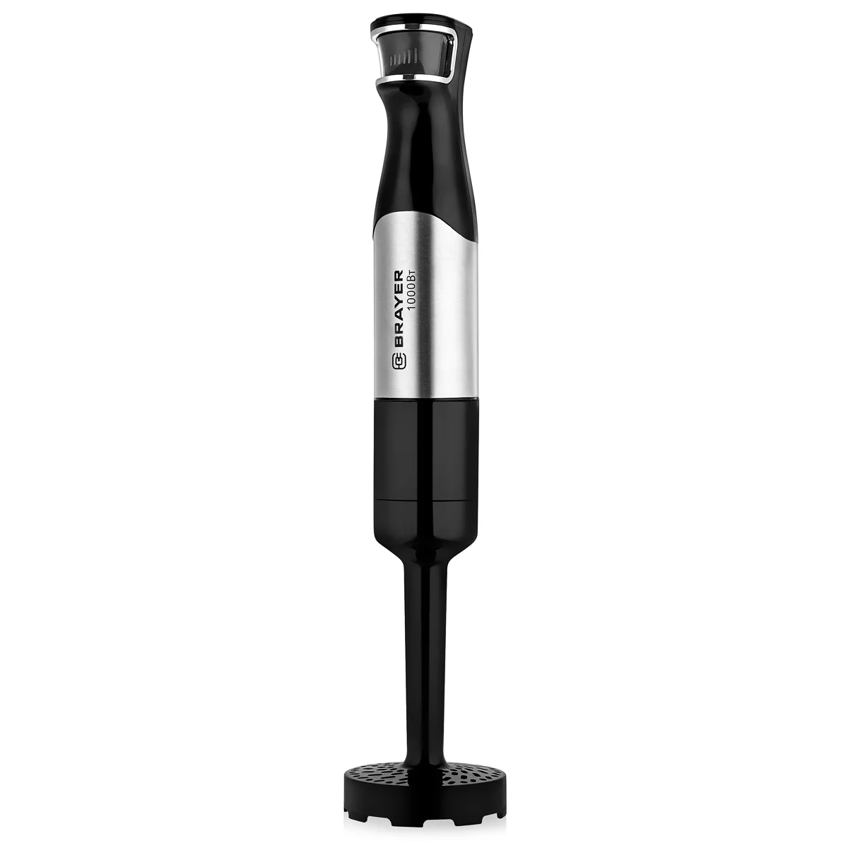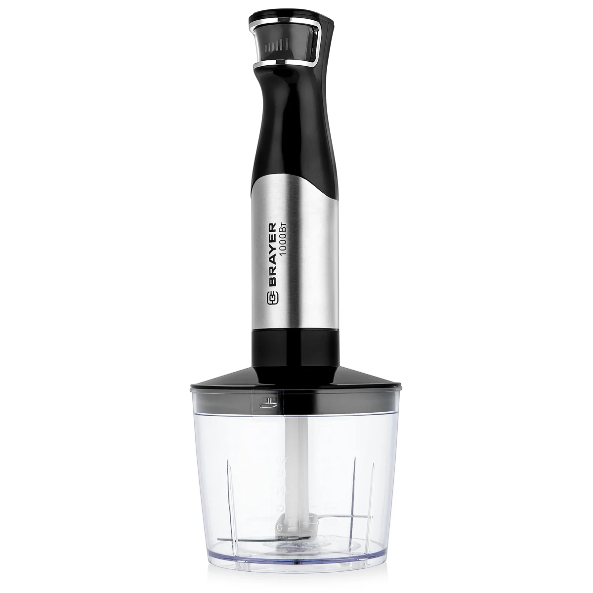 Погружной блендер с мощностью 1000 Вт поможет Вам приготовить разнообразные блюда. У блендера BR1254 плавная регулировка скорости и есть Турборежим, благодаря чему Вы сможете как взбить тесто, так и перемолоть орехи в измельчителе.