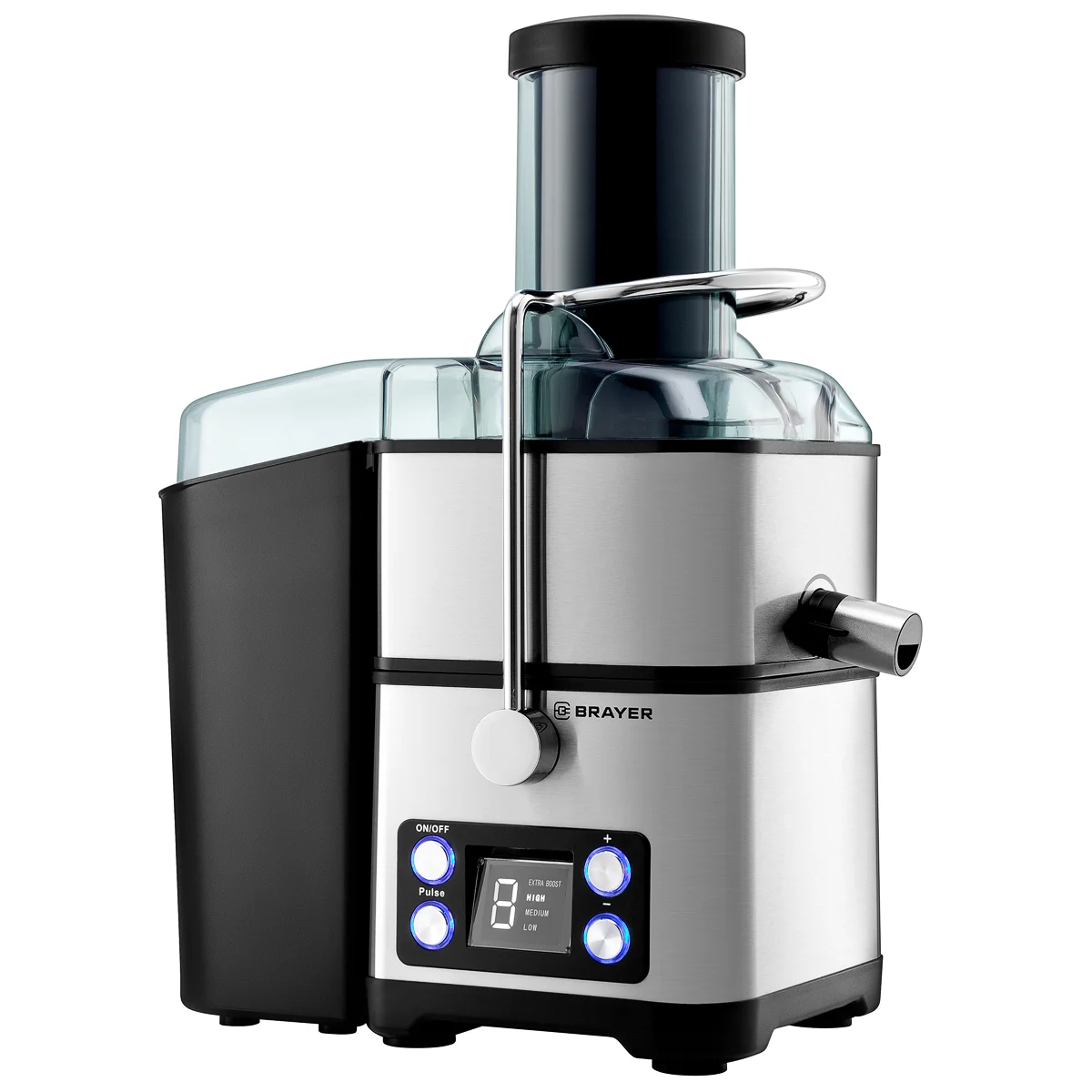 Контейнеры для сока и мякоти объемом 1,1 и 2 литра, а также широкий фильтр из нержавеющей стали позволяют получить максимальное количество сока из фруктов и овощей.