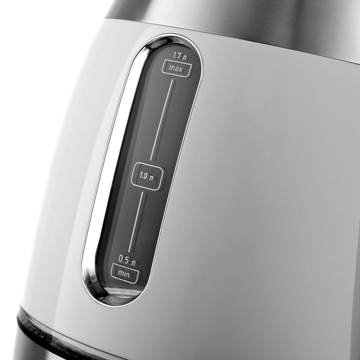 Благодаря мощности 2200 Вт, чайник вскипятит воду за считанные минуты. Объем чайника составляет 1,7 л