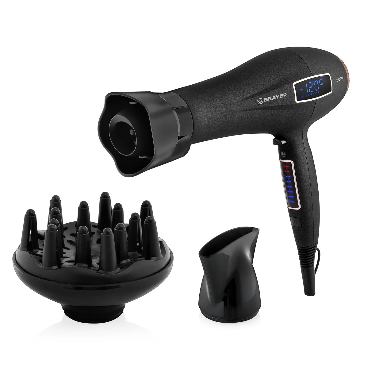 Фен обладает инновационным сенсорным управлением на ручке и LED-дисплеем на корпусе.