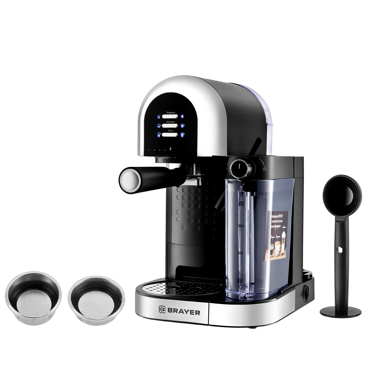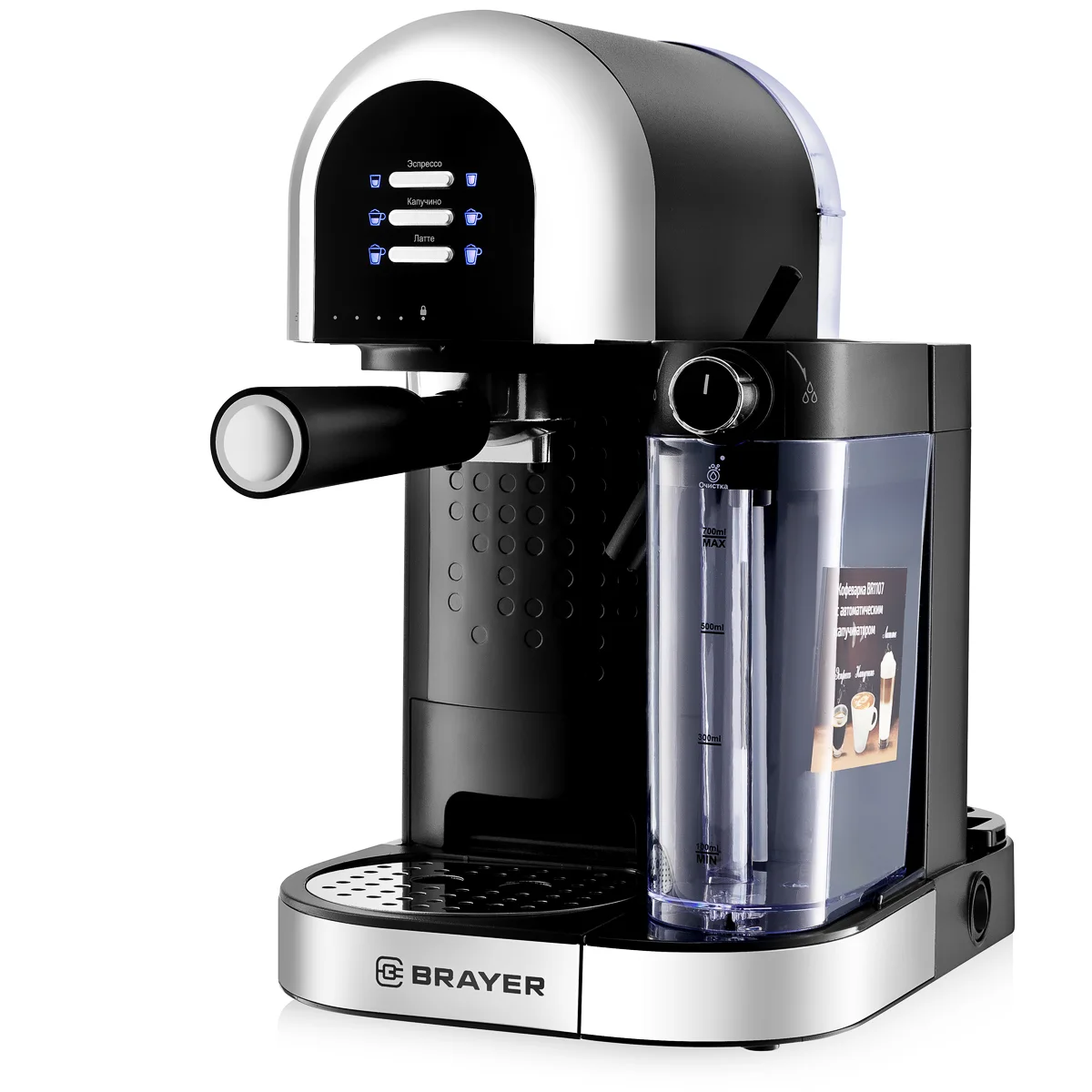 С кофеваркой BR1107 Вы сможете приготовить как эспрессо, так и капучино или латте.