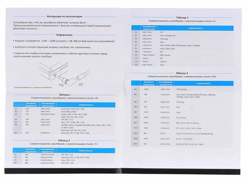 Универсальный блок питания мощностью 90 ватт. В комплекте входят 11 сменных штекеров, подходящих к большинству ноутбуков. Выбор мощности для питания происходит в автоматическом режиме.