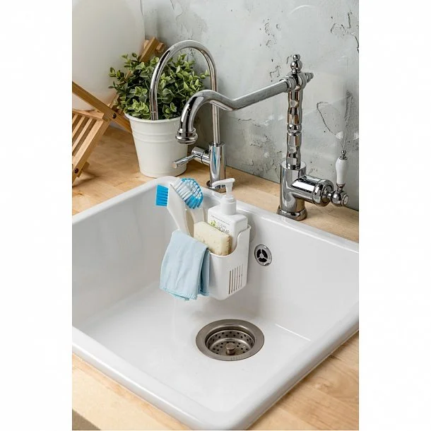 Держатель крепится к поверхности раковины или глянцевому фартуку с помощью присосов или саморезов. Держатель позволяет освободить плоскость возле раковины на кухне и сэкономить место. Хранение губки в держателе позволяет лишней жидкости стекать прямо в раковину и уберегает поверхность столешницы от избыточной влажности, а сетчатое дно держателя обеспечивает быстрое просыхание губки или щётки и предотвращает развитие на них грибка. Держатель продаётся в стильной упаковке, в комплекте идут два присоса. Легко моется, в том числе в посудомоечной машине (без присосов). Изготовлен из полипропилена, не содержит бисфенол А.
