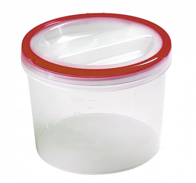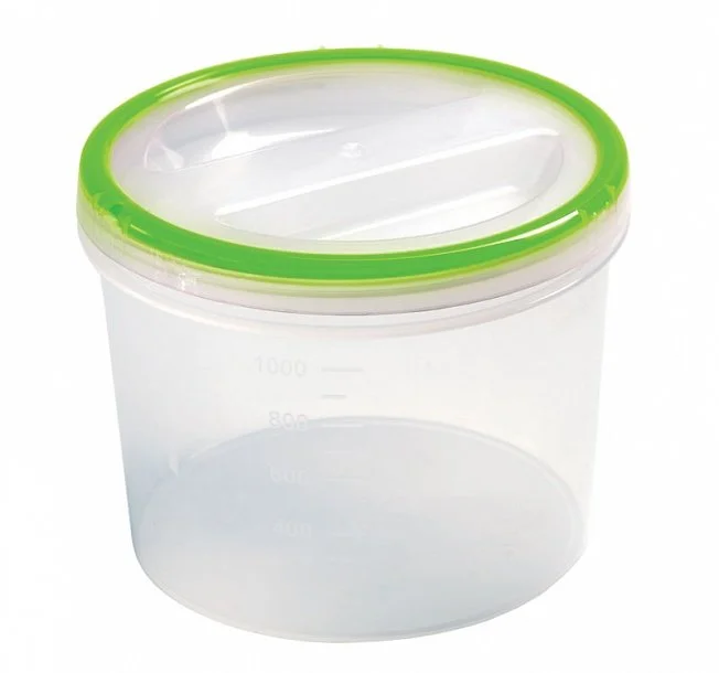 Банка «Винтаж» имеет винтовую крышку и подходит для хранения, замораживания и разогревания в микроволновой печи (без крышки) различных продуктов и готовых блюд. Плотно прилегающая крышка дополнена окрашенным в яркий цвет эластичным материалом, который надежно предохраняет содержимое от посторонних запахов. Наполненную банку можно перевозить, не опасаясь, что крышка откроется. Прозрачные корпус и крышка позволяют видеть содержимое, а мерная шкала на корпусе поможет определить объем продукта. Банки можно ставить одну на другую для экономии места в холодильнике или кухонном шкафу. Можно мыть в посудомоечной машине.