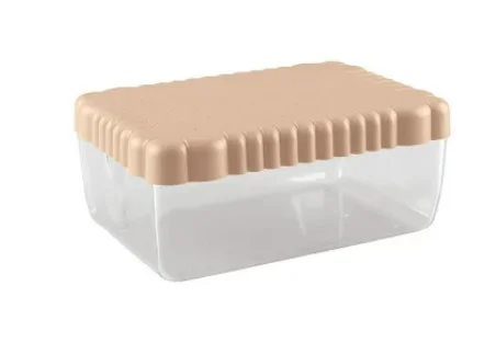 Крышка контейнера, стилизованная под печенье, плотно прилегает к корпусу и защищает содержимое от посторонних запахов.