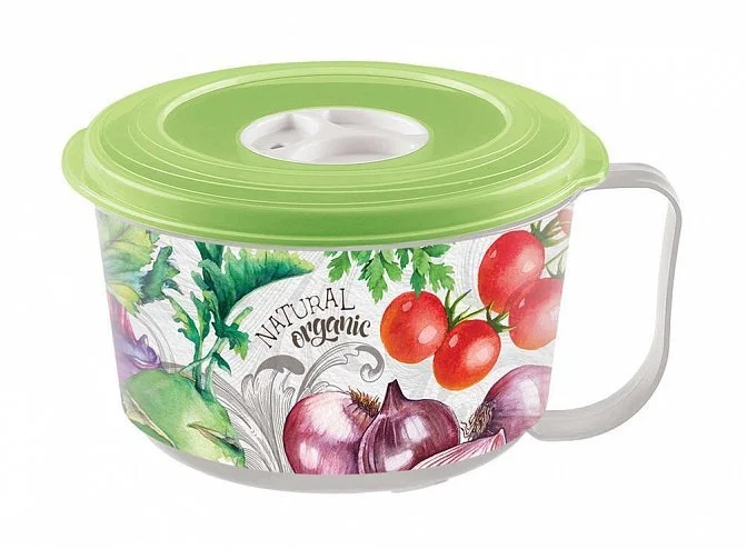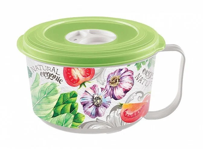 Новый контейнер-кружка для бульона предназначен для хранения бульонов и супов в холодильнике или разогревания в микроволновой печи (с открытым клапаном). Имеет прочную ручку: наполненный контейнер удобно переносить. Благодаря специальному клапану на крышке в контейнере можно разогревать пищу, не снимая крышки (с открытым клапаном). Это предохраняет внутреннюю поверхность микроволновой печи от загрязнений. Для хранения в холодильнике клапан можно закрыть: так продукт не заветрится и не впитает посторонние запахи. Яркий декор нанесен с помощью технологии IML, не стирается и не повреждается в процессе эксплуатации.