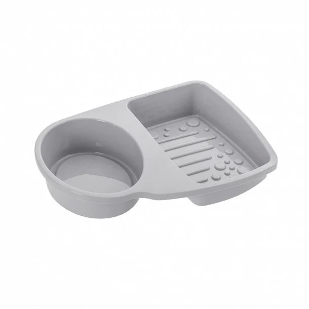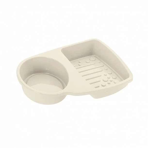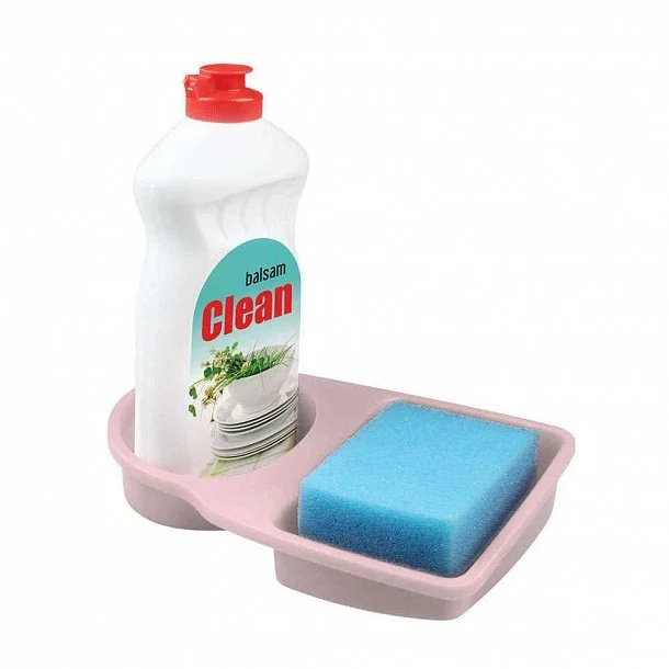 Подставка имеет два отделения: для моющего средства и для губки. Помогает поддерживать чистоту и порядок на кухне и ванной комнате. Имеет компактные размеры. Подставку можно мыть в посудомоечной машине.